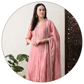 Dusty Rose Chikankari Pure Soft Organza Anarkali Suit- Set of 3