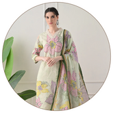 Color: Cream and Yellow Fabric: Cotton This is a stunning 3-piece A-line suit in a soft yellow shade, a masterful choice for summer that's light, airy, and guaranteed to keep you looking and feeling cool. The outfit is made from pure cotton and showcases intricate...- Rs. 2,495