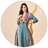 Color: Blue Fabric: Pure Crepe (Cotton Lining Attached) A gorgeous Blue Pure Crepe Anarkali Suit features:- A stunning Digital print.- Super soft crepe fabric with a cotton lining for extra comfort.- Elegant mirror work detailing on the neckline.- A dressy, flowy design perfect for...- Rs. 3,595