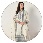 Color: Cream Fabric: Cotton (mul lining attached) This beautiful cream suit features intricate Chikankari embroidery, adding a touch of elegance to its design. The pants have lace detailing, while the stunning double-shade chiffon dupatta complements the outfit perfectly. With a comfortable mul lining attached,...- Rs. 3,295
