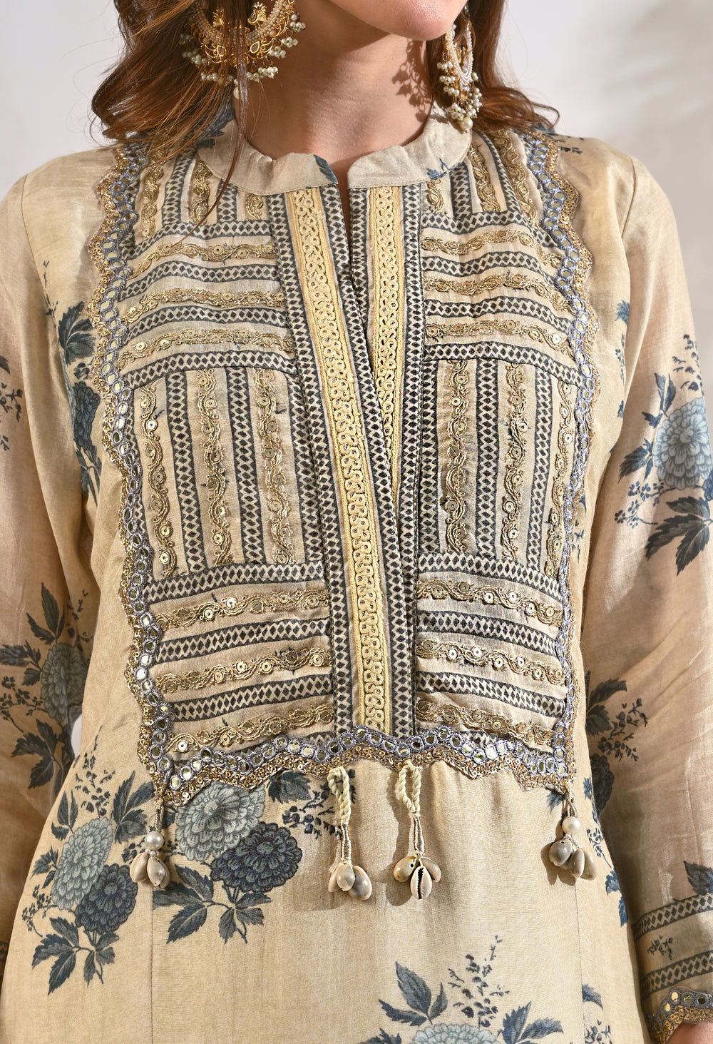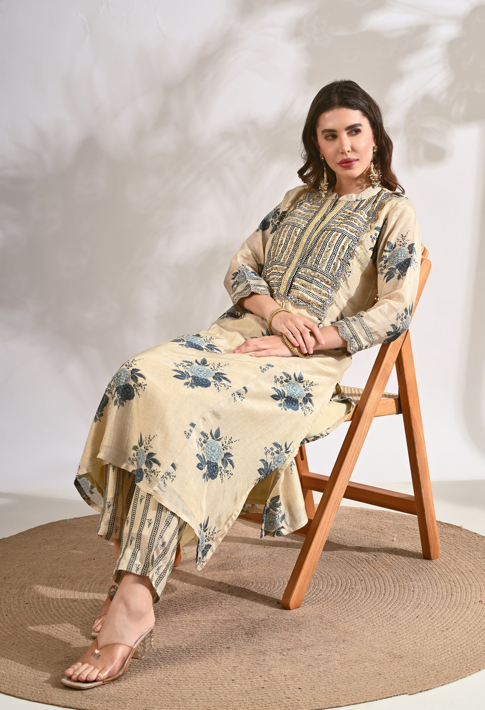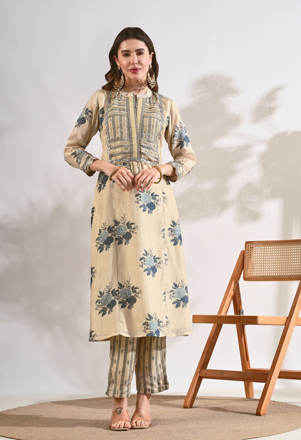 Luxurious Ivory Zari Sequin work Muslin Kurta with Pants - Set of 2
