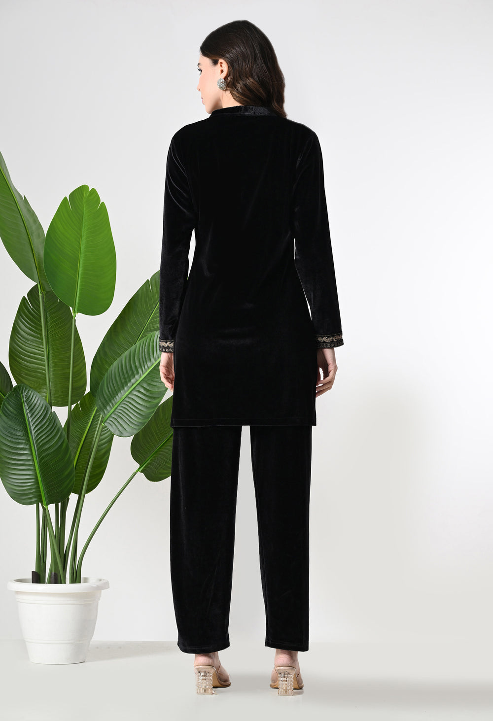 Black Velvet Co-ord set with Zari Sequence and Cutdana Work Paired with Smart Pants- Set of 2