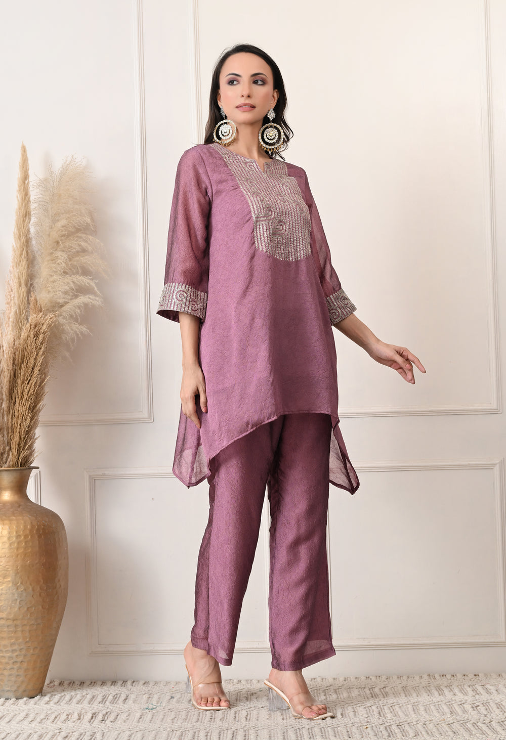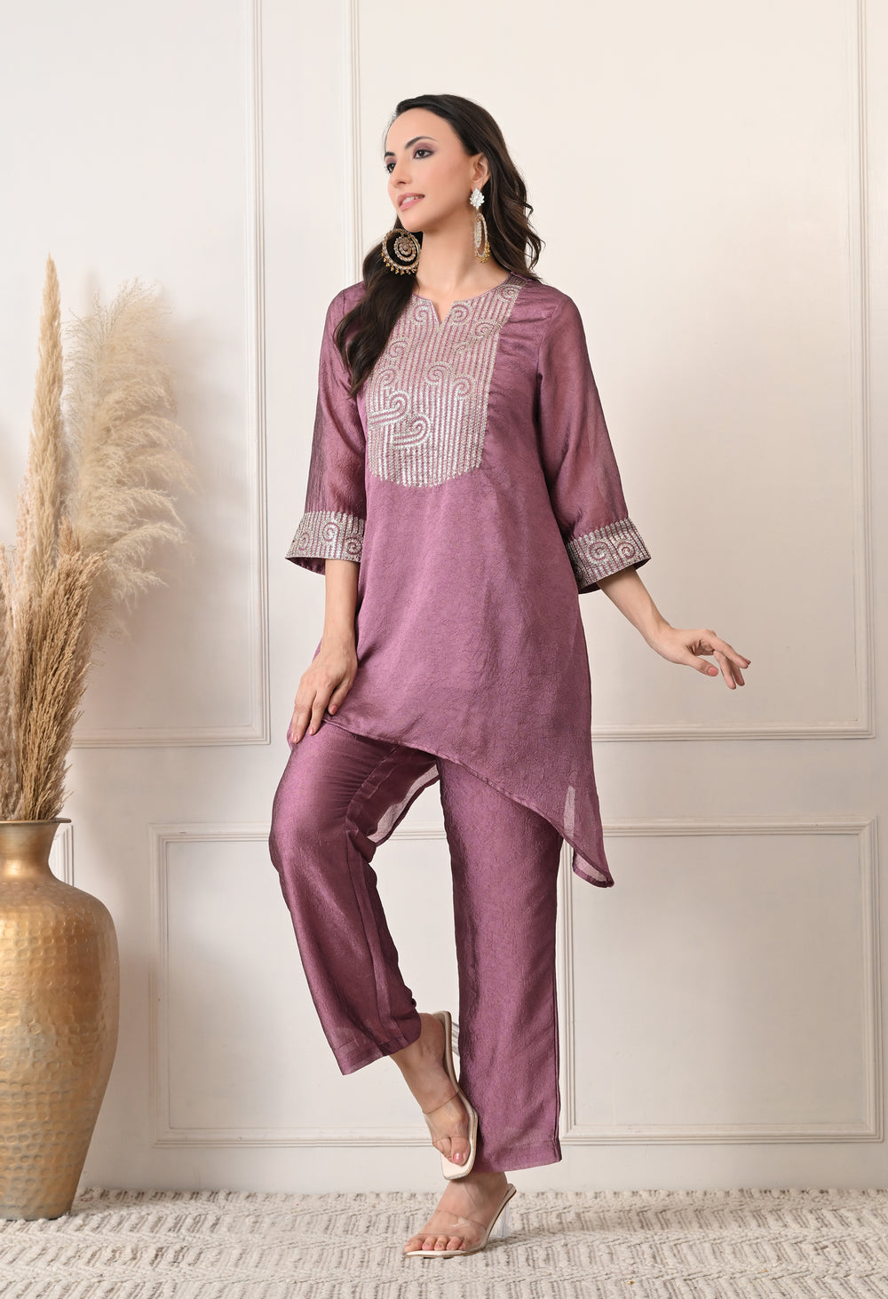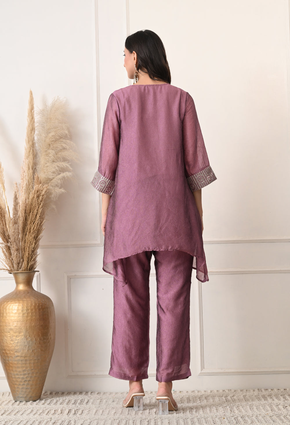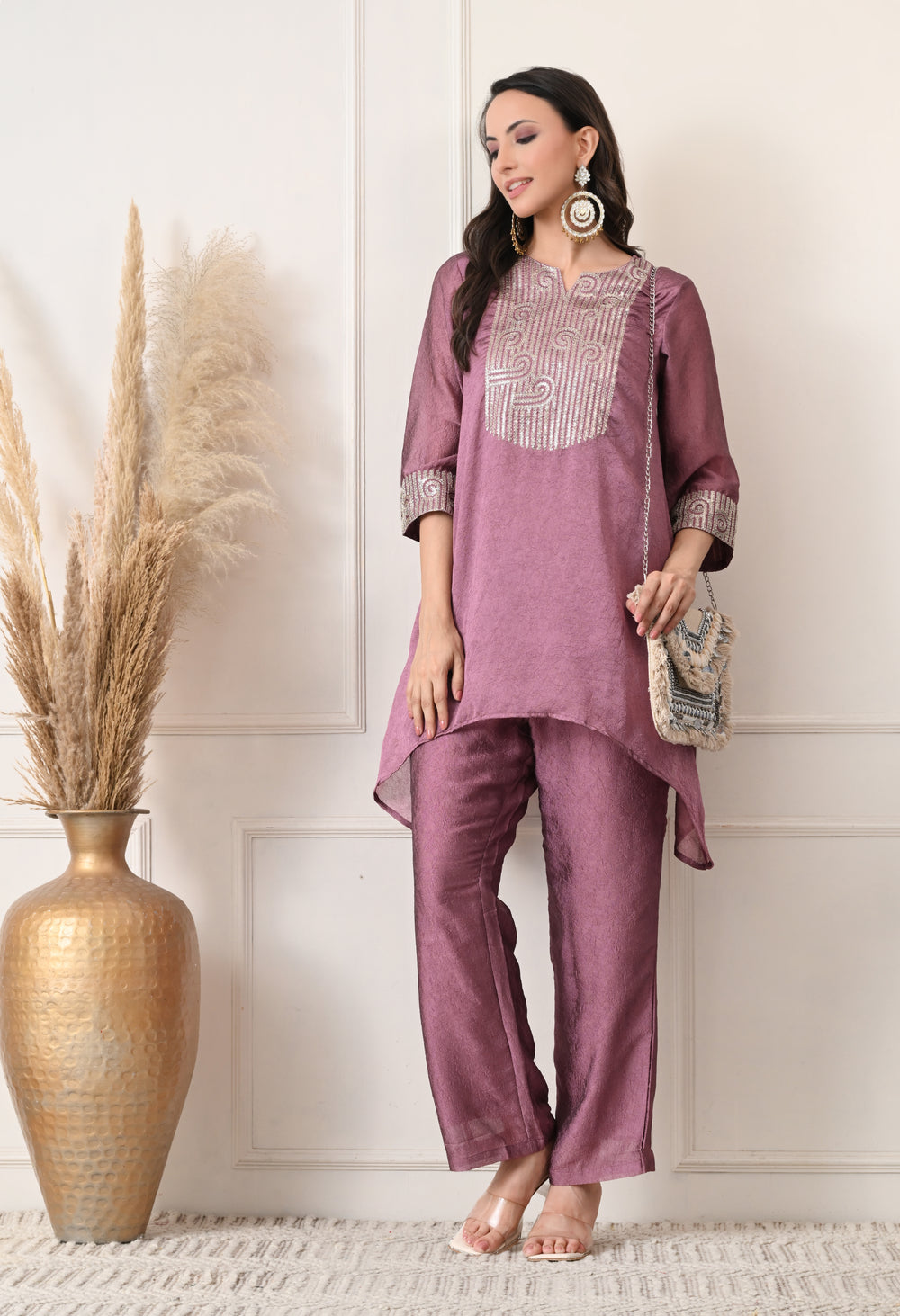 Elegant Blush Pink Crush Silk Sequin Work Co-Ord Set