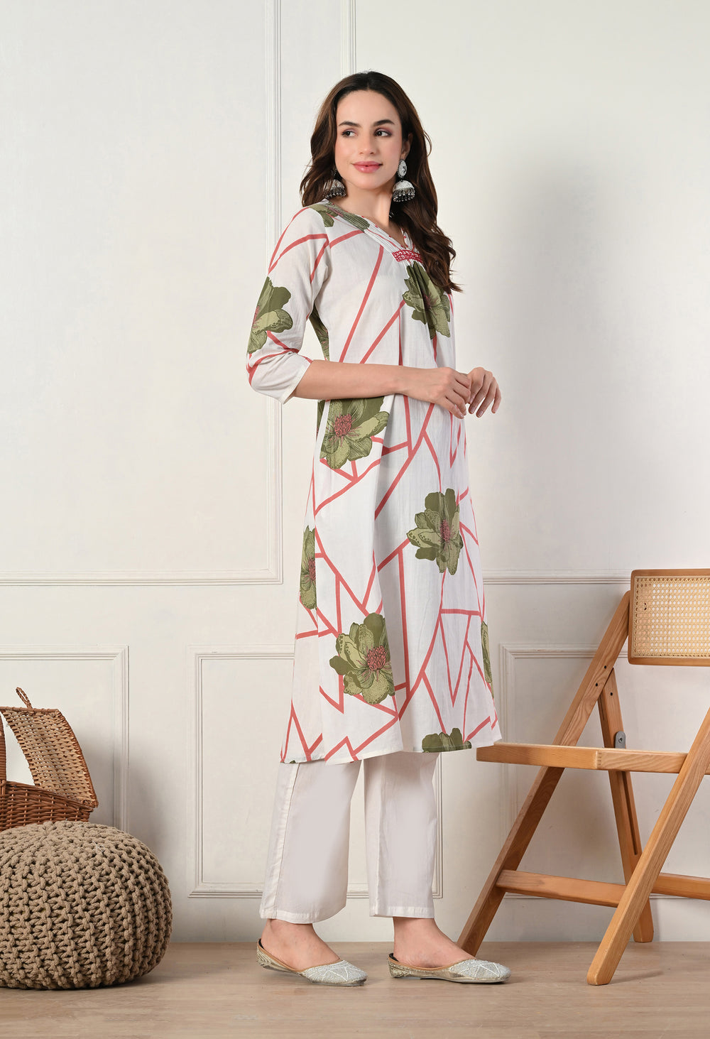Paired with pants and a lightweight mul cotton dupatta, it's ideal for casual gatherings, office wear, or everyday chic, ensuring you look effortlessly elegant and feel comfortable all day long.