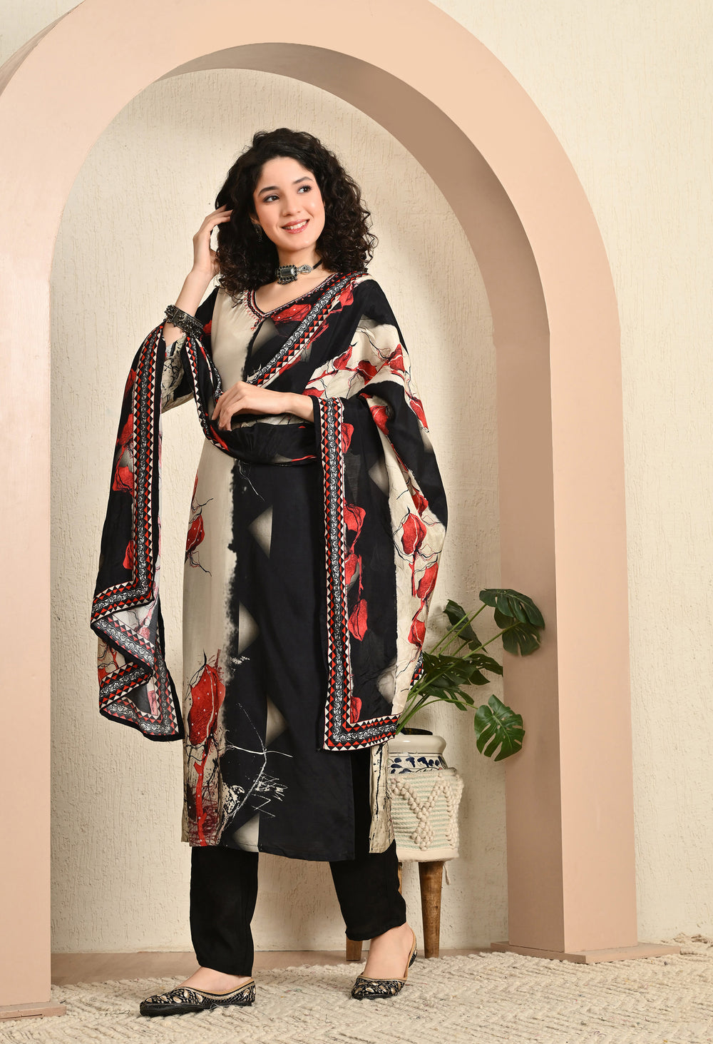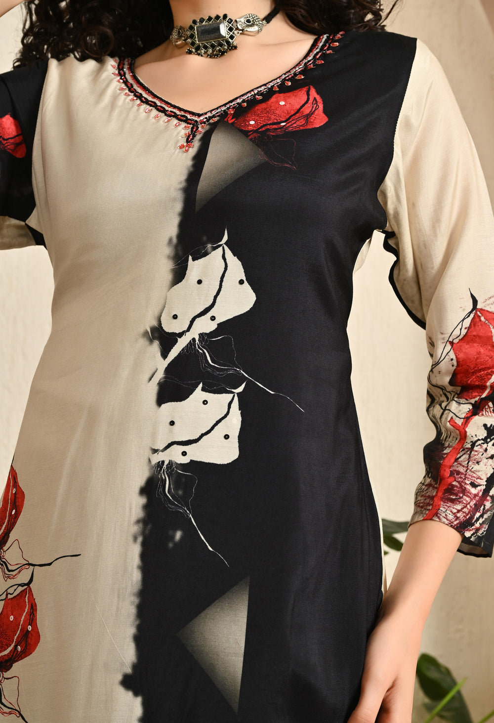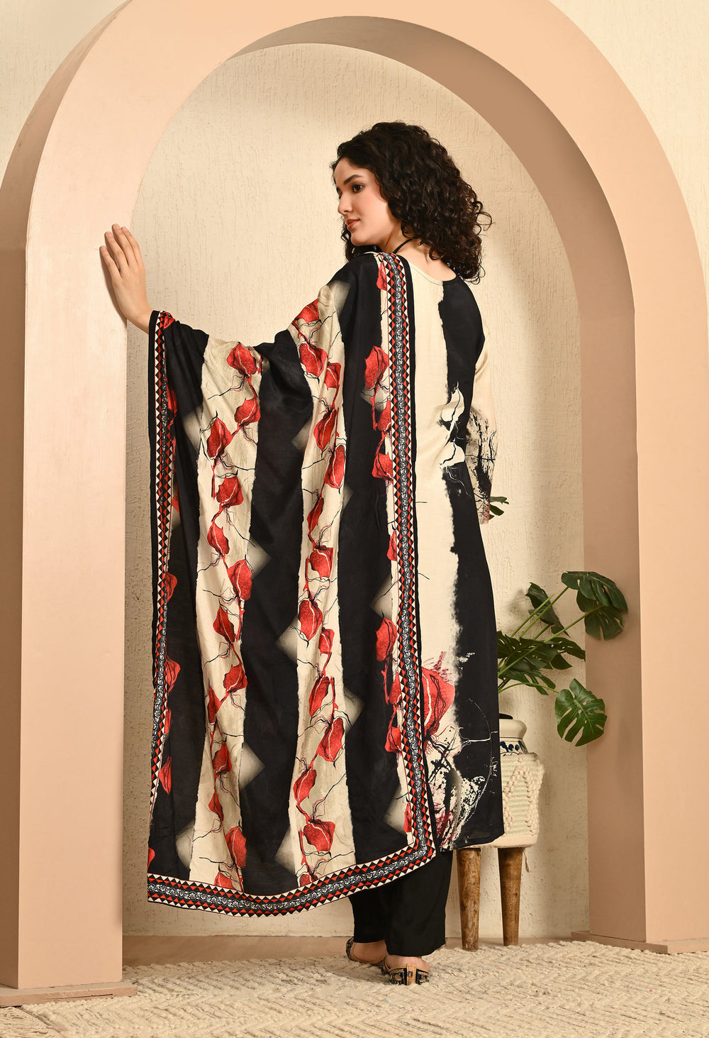 Black Muslin Suit with Handwork Detailing - Set of 3
