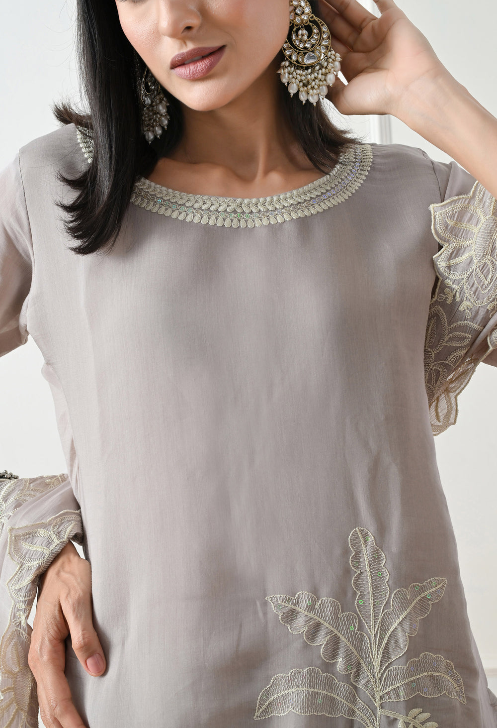 Grey Mul Chanderi Embroidered Suit - Set of 3