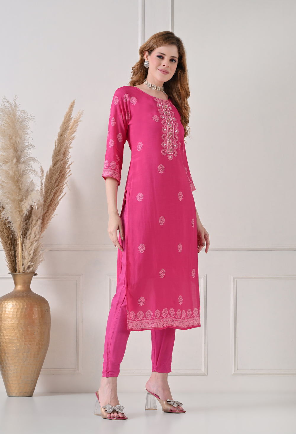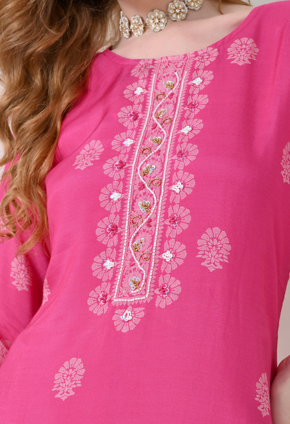 This stunning Pink Muslin suit is a perfect blend of style and comfort. Made from premium fabric, it's very soft and for added comfort, a cotton mul lining is attached.