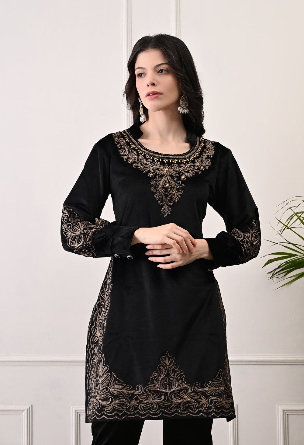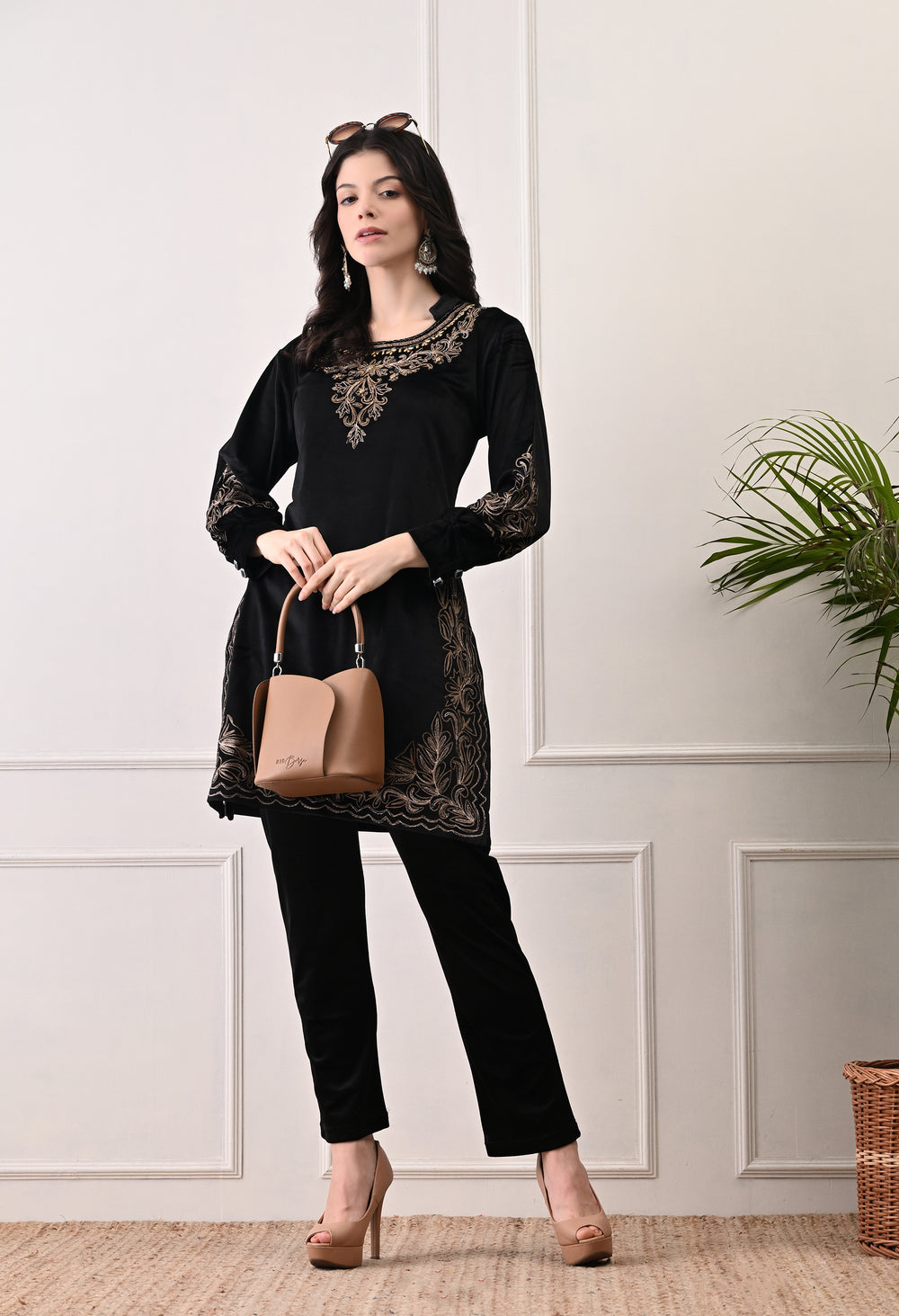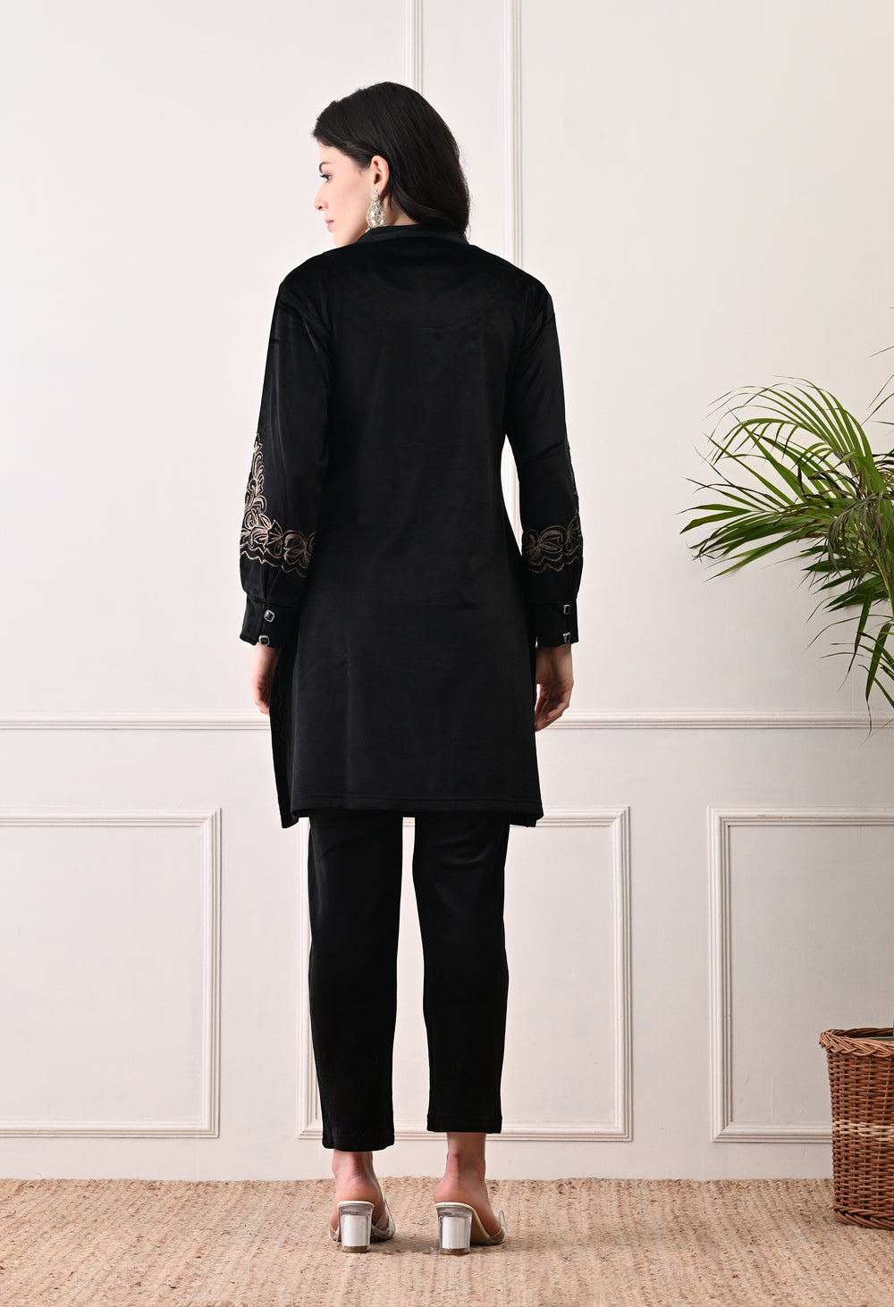 Soft velvet coord set, ideal for the festive season! It is very warm and comfortable, with nice Kashmiri embroidery and beadwork. Celebrate in style and comfort!